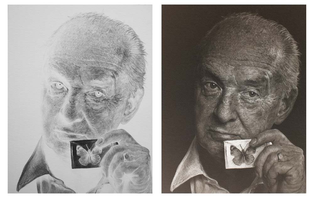 李舜 无题-Vladimir Nabokov,摄影,纸上素描、8 x 10英寸黑白大画幅底片,25.4 x 20.32cm x 2,独版,2014/Li Shun Untitled-Vladimir Nabokov, Photography,Drawing on paper, 810inches Black and White Negative photogra