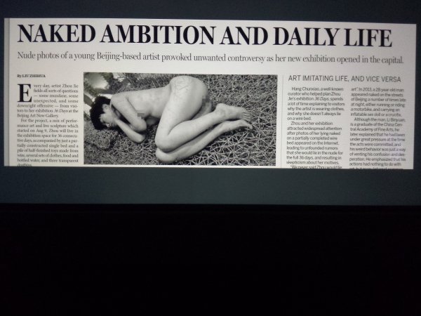 The Exhibition of Annual of contemporary art of China was grandly opened in Beijing Minsheng Contemporary art museum at Dec 26th, 2015. This exhibition is organized by Beijing Minsheng Contemporary art museum, Center for Visual Studies of Peking University and Wu Zuoren International Foundation of Fine Arts. Curator is Mr. Zhu Qingsheng. The theme of academic research of this exhibition is determined at beginning for Minsheng Contemporary art museum opening show. By systematic academic method presenting Chinese contemporary art in the period of overall situation in 2014. The work “36 days” of Artist Zhou Jie from Beijing Art Now Gallery was selected for the exhibition, the “36 days” including installation, video and photography.